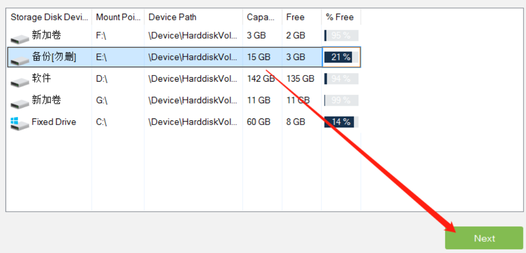 2.然后下一步我们需要选择想要清理释放空间的磁盘,选中之后点击界面右下角的Next这个下一步按钮。