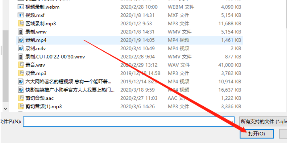 2.点击添加文件之后下一步就是出现选择文件的界面了,在这个界面中我们选中目标视频文件之后点击右下角的打开按钮。