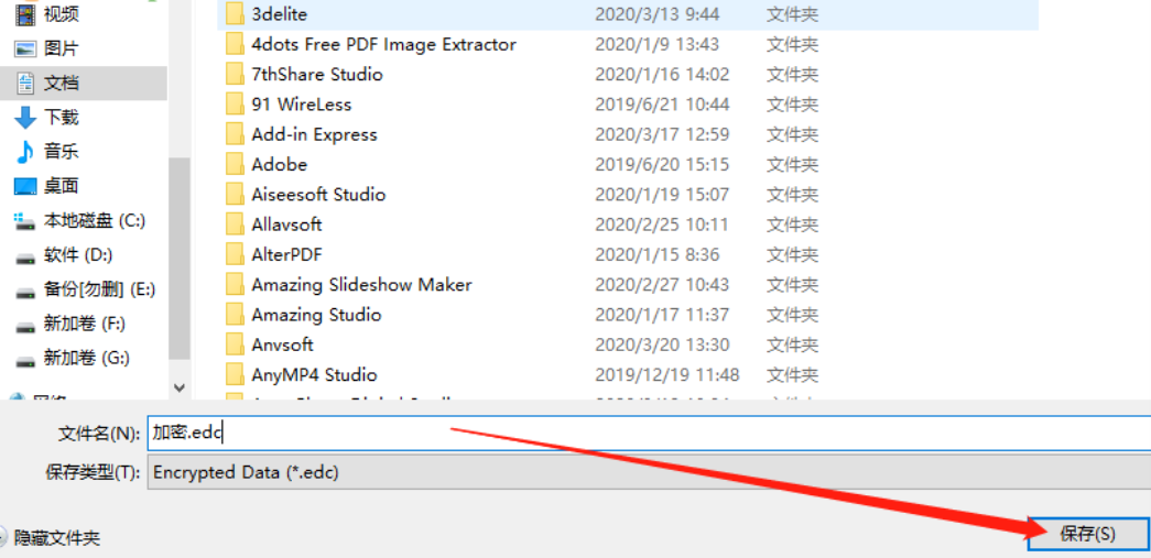 4.点击这个OK按钮我们就回来到保存加密文件的界面了,在这个界面中设置好加密后的文件名称之后点击右下角的保存按钮即可。