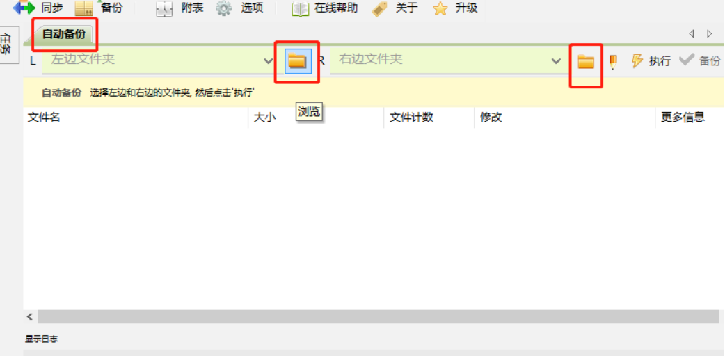2.点击OK按钮之后这个备份任务的新建完成了,然后我们点击界面中的两个文件夹按钮即可选择要备份的源文件夹和目标文件夹。