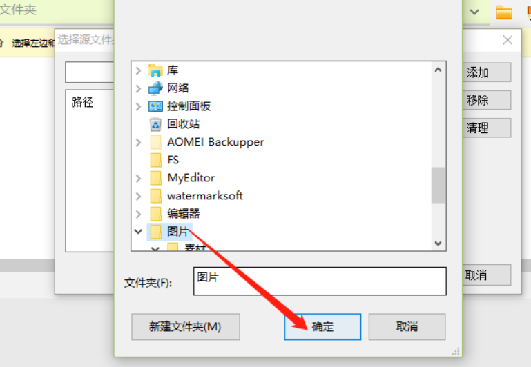 3.点击文件夹图标之后会打开一个选择文件夹的界面,然后我们在界面中点击选择要备份的文件夹之后点击确定。