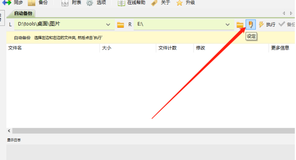 5.然后我们使用上一个步骤的操作方法将备份的目标文件夹也选择完成之后,点击界面中的铅笔图标,也就是设定备份的功能图标。