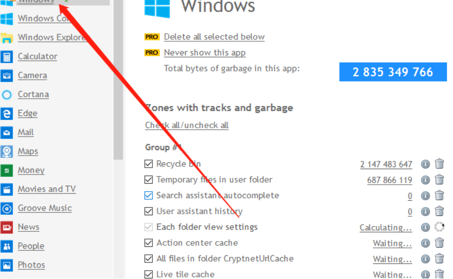 2.点击查看扫描的情况之后回来到下图所示的界面,在这个界面中的左边列表就是软件会扫描的一些选项,每个选项模块中都会显示扫描出来的垃圾文件。