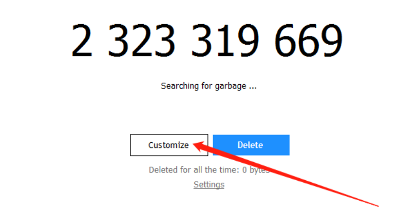 1.首先第一步我们进入到软件之后,软件就会自动开始扫描垃圾文件的操作,我们在扫描的界面中点击Customize这个按钮即可查看扫描的情况。