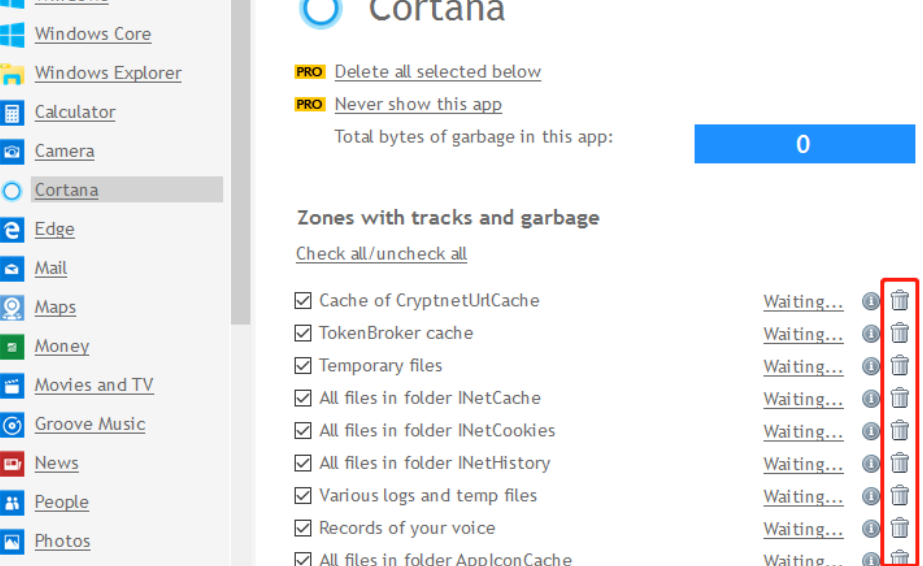3.我们选中某个选项之后在界面的右边可以看到有一个垃圾桶图标,点击选项后面的垃圾桶图标即可将这类垃圾清理掉。
