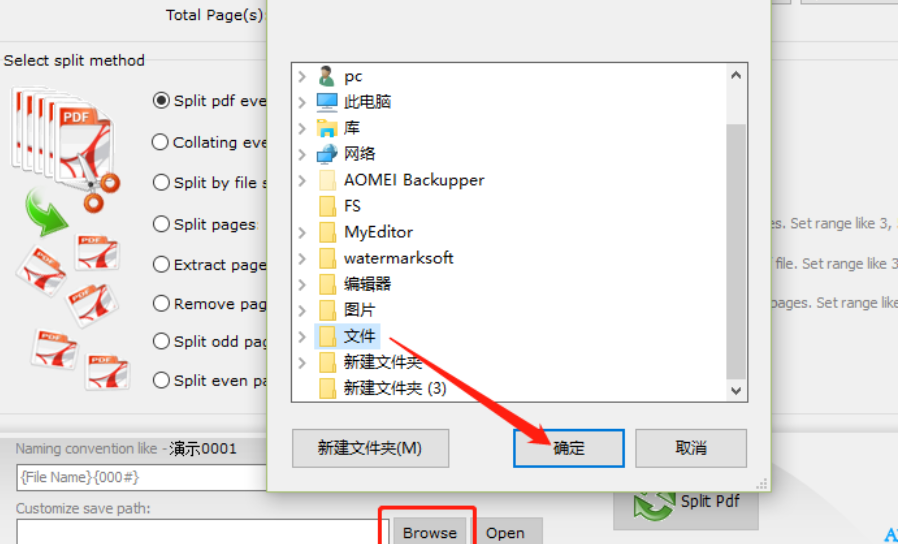 4.选择好分割方式之后点击界面下方的Browse按钮即可选择文件分割之后的储存位置,如下图中所示。
