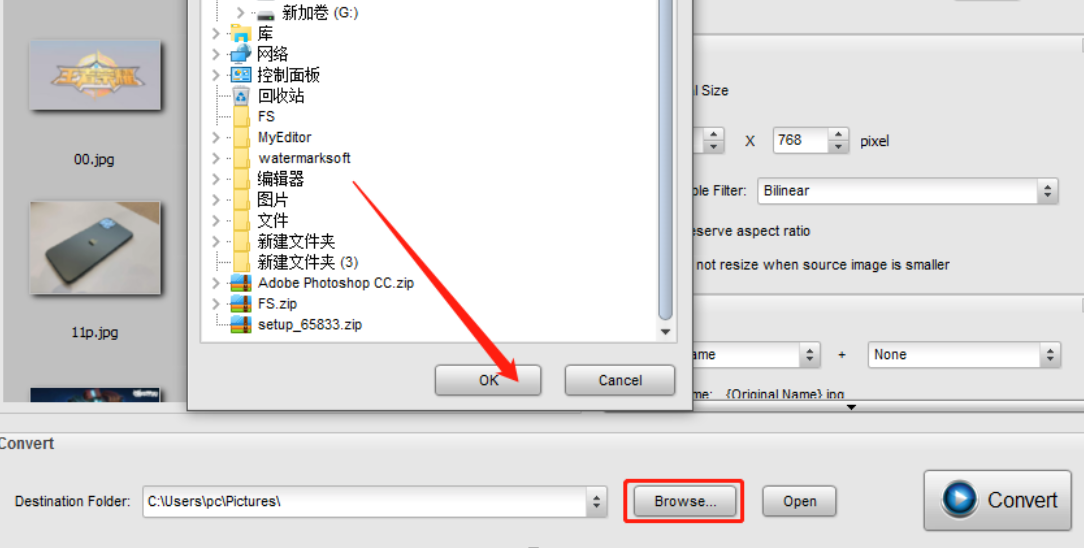4.我们根据自己的需求设置好修改的尺寸大小之后,点击界面下方的Browse这个浏览按钮即可选择文件的输出路径。