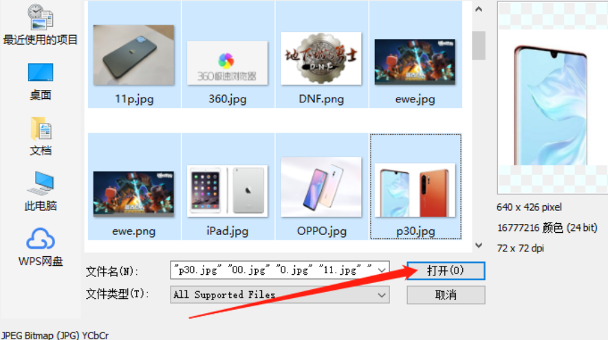 2.点击添加之后紧接着在出现的选择文件界面中,然后选择自己想要修改尺寸的图片,全部选中之后点击打开按钮即可。
