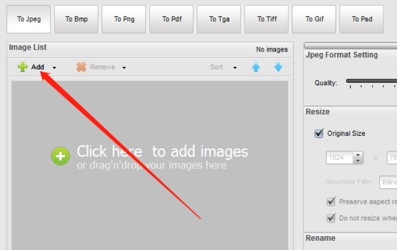1.首先第一步我们打开软件之后在软件的界面中点击Add这个功能按钮,点击之后即可添加需要处理的图片。