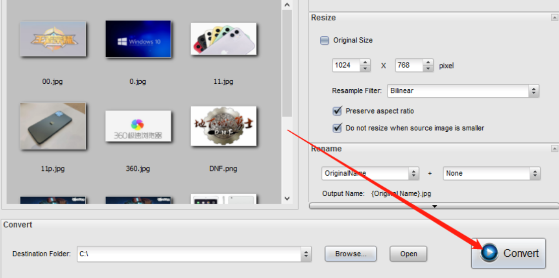 5.等到我们设置好文件的输出路径之后,点击界面右下角的Convert这个转换按钮就可以开始批量修改这些图片的尺寸了。