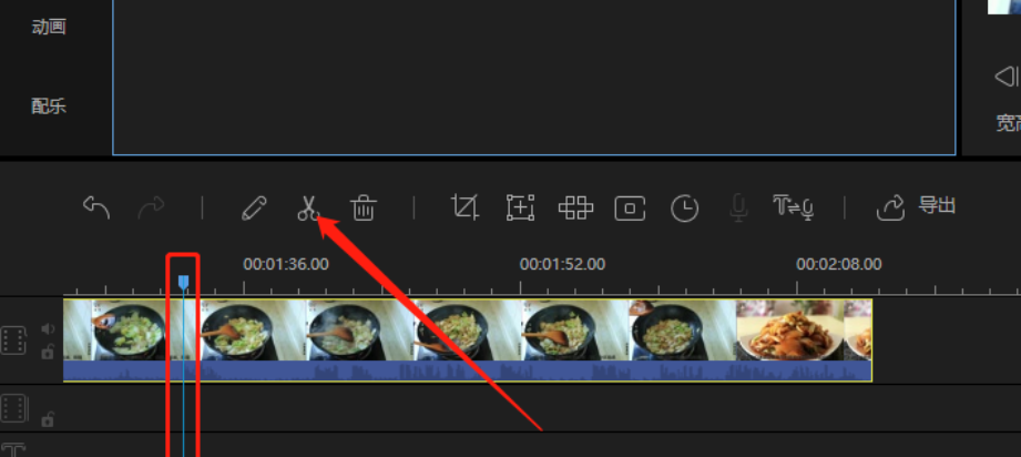 4.将视频拖放到操作台之后,我们就可以移动指针来选择想要剪切的位置了,移动到目标位置之后点击上方的剪刀图标即可剪切。