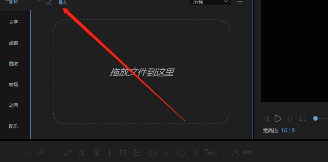 1.首先第一步我们打开软件之后,在界面中找到导入这个功能按钮,点击导入之后即可导入自己想要剪切的视频文件。