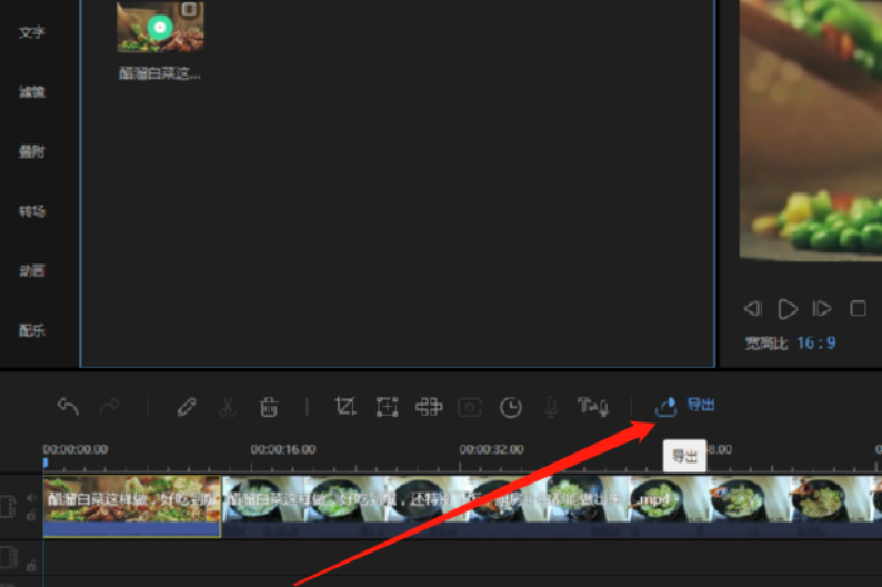 5.根据自己的需求剪切好想要的视频片段之后,下一步我们点击操作台上方功能图标中的导出这个功能按钮即可导出剪切好的视频。