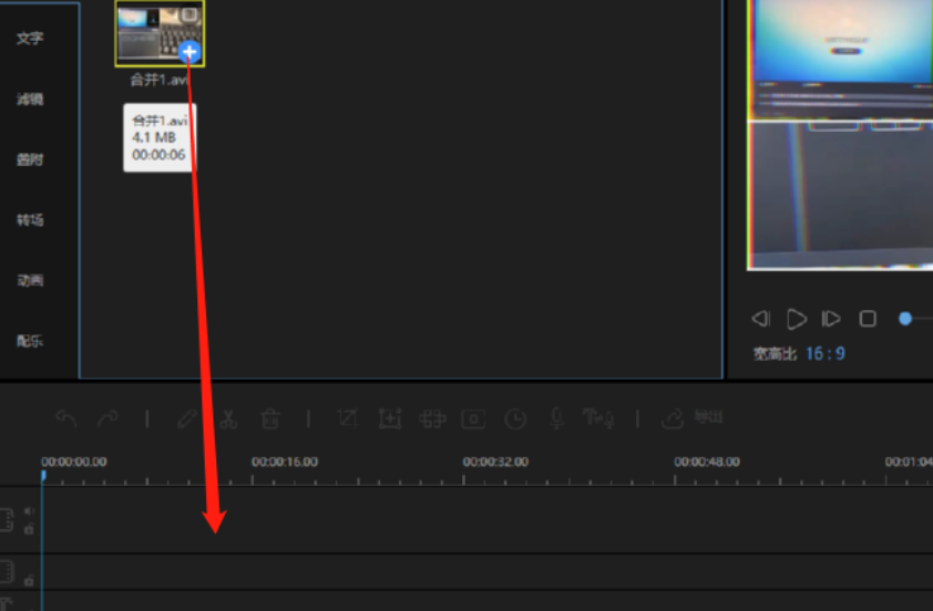 3.点击打开按钮之后我们选择的视频文件就成功加载进来了,然后下一步我们在界面中用鼠标点击视频拖放到下方的操作台当中。