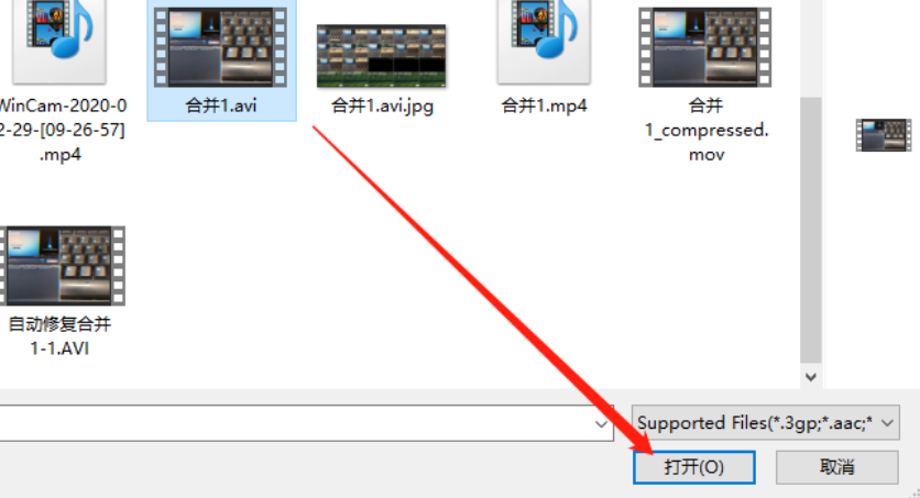 2.点击导入按钮之后紧接着就打开一个选择文件的界面了,在这个界面中选中目标视频文件之后点击右下角的打开按钮。