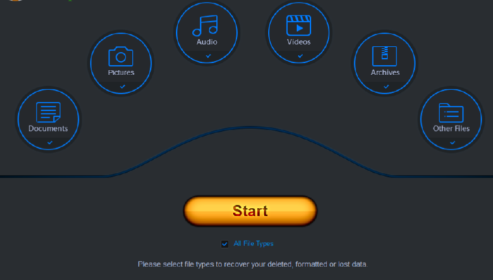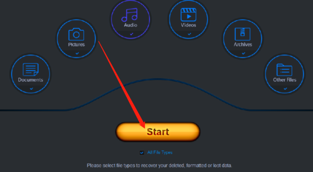 1.首先第一步我们打开软件之后在界面中选择要恢复文件的类型,勾选之后点击下方的Start这个开始按钮。