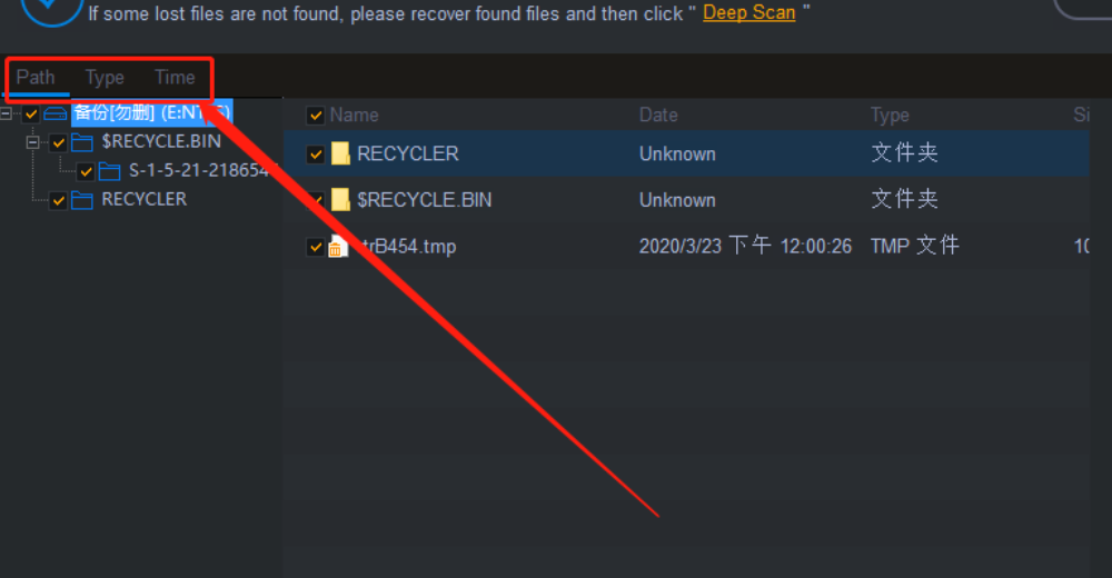4.等到扫描完成之后我们在界面左边就可以看到扫描出来的一些文件数据了,可以选择用过文件类型来查看或者是创建时间来查看。