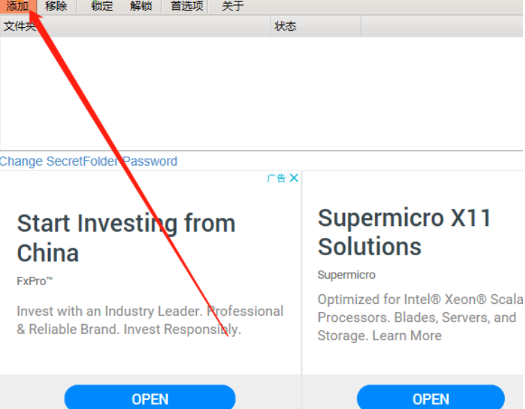 2.密码设置完成我们就成功进入到软件界面中了,然后我们点击界面左上角的添加按钮即可添加想要加密的文件夹。
