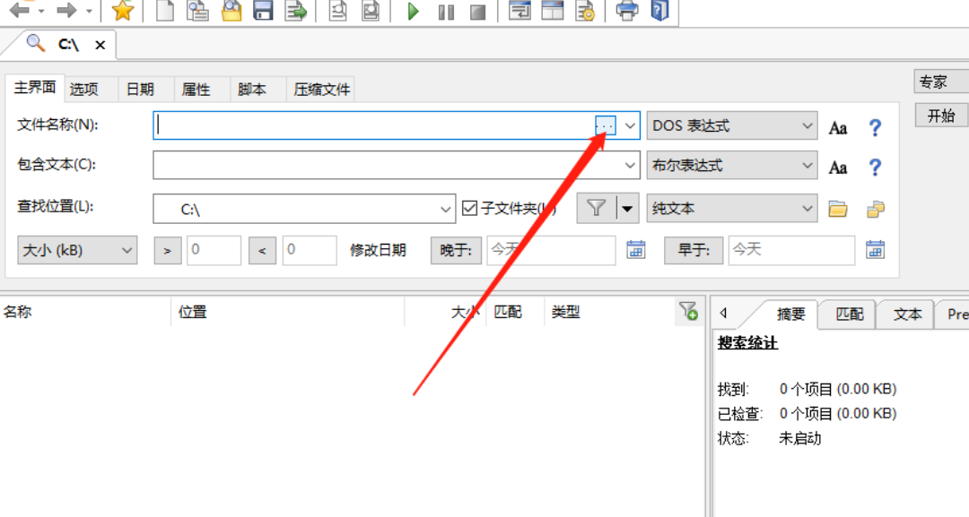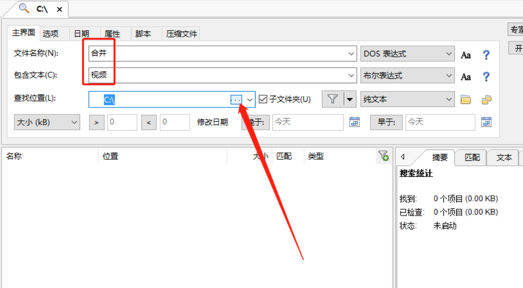 3.然后我们使用同样的方法选择设置好包含文本的关键词之后,点查找位置的三点按钮,点击即可选择查找文件的位置是哪里。
