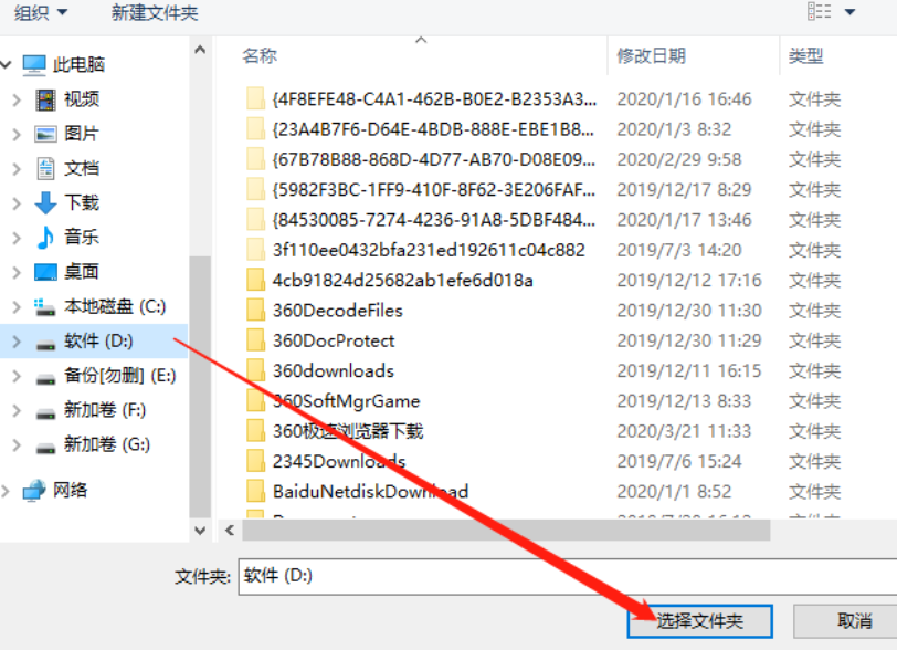 4.点击选择查找位置之后,在出现的界面中选择好指定的位置之后点击选择文件夹按钮即可。