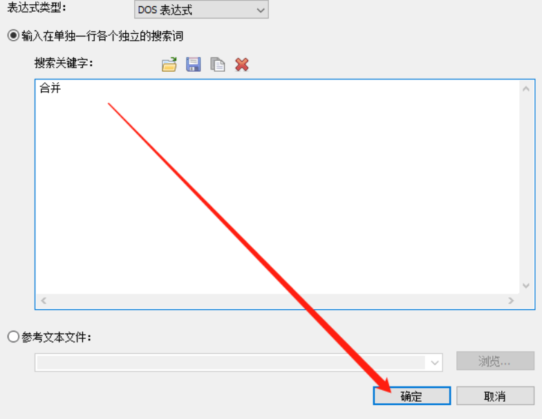 2.点击打开输入关键词的界面之后,我们在界面中输入想要搜索的文件的名称,输入之后点击界面右下角的确定按钮。
