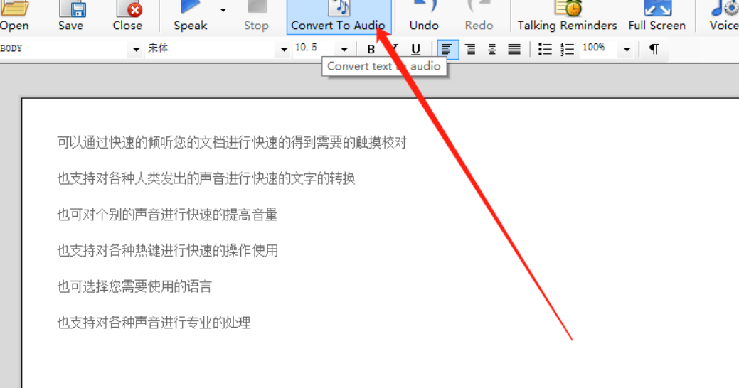 4.试听结束之后我们点击界面上方的Convert To Audio这个转换成音频的按钮即可开始将文本转换成音频文件。