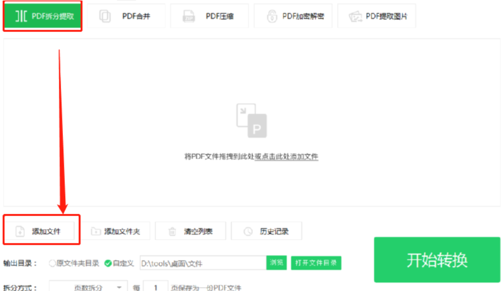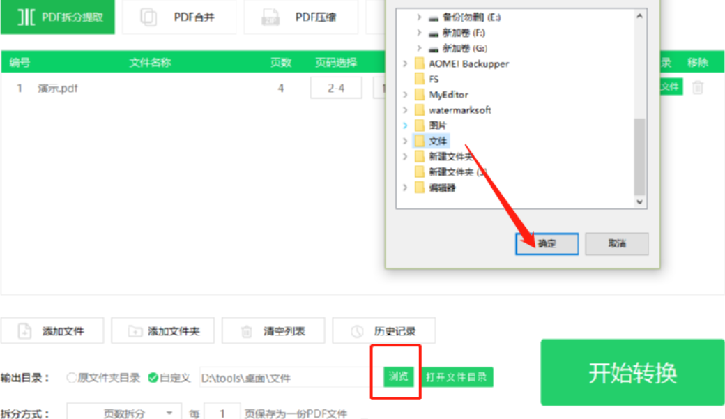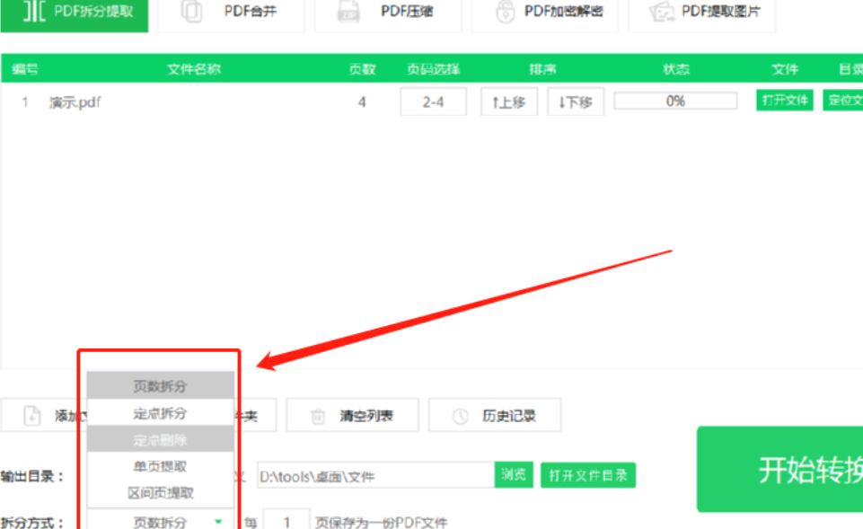 5.最后我们在设置好拆分文件的参数之后,点击界面右下角的开始转换这个功能按钮就可以开始拆分PDF文件的操作了。
