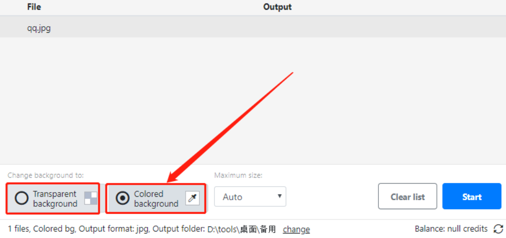 3.点击打开按钮之后我们选择的图片就成功加载到软件界面中了,然后下一步我们可以设置抠图的背景图片,有透明背景和彩色背景两种选择。
