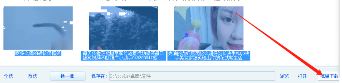 4.设置好储存位置之后我们就可以点击选中想要下载的视频文件,然后点击右下角的批量下载按钮进行下载了。