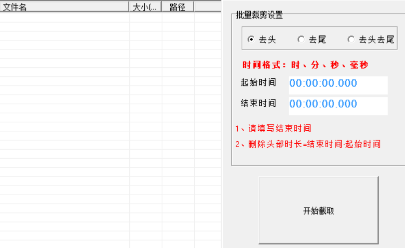 4.选择好想要剪切的方式之后下一步在起始时间和结束时间这两个模块中输入想要剪切的时间段,大家根据自己的需求来输入即可。