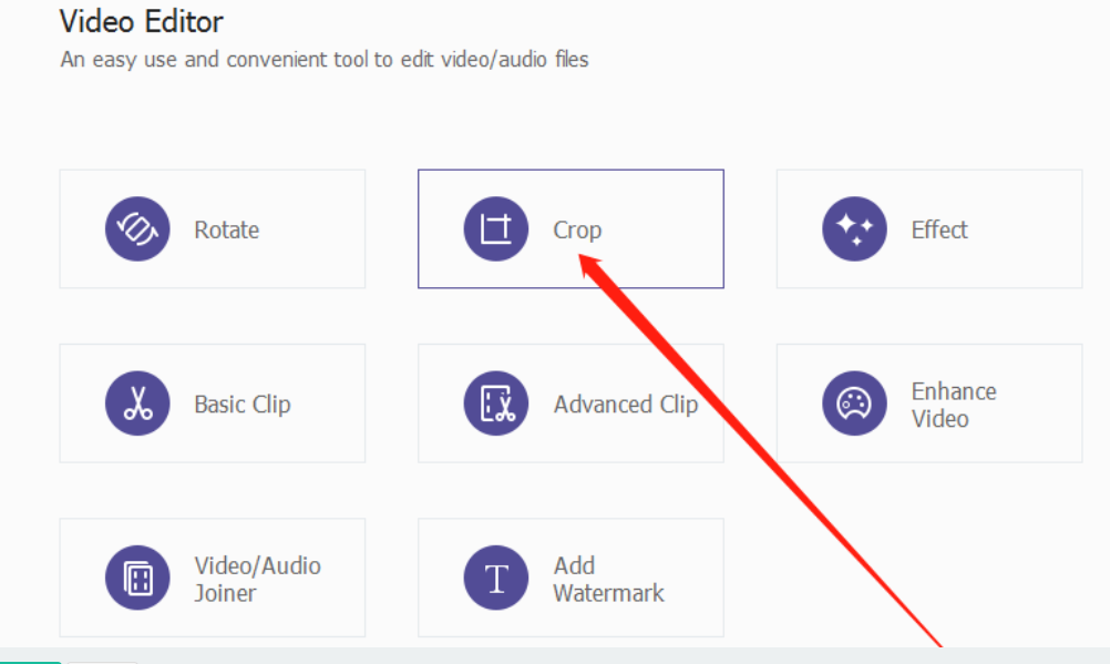 1.首先第一步我们打开软件之后在软件的主界面中点击进入到Crop这个功能界面中,然后就进入到裁剪视频的界面了。