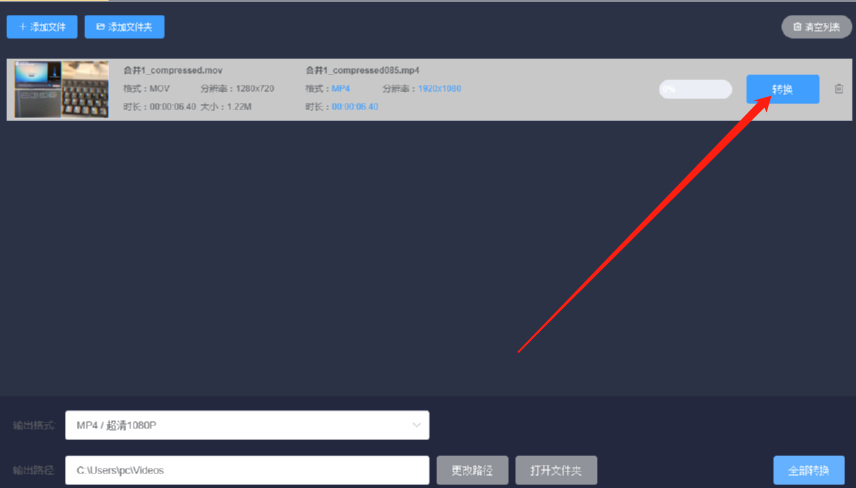5.最后我们在完成上述步骤以后,点击界面视频列表后面的转换这个功能按钮即可开始转换视频文件格式的操作。
