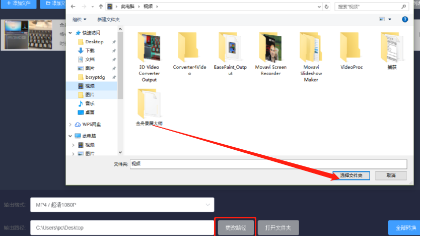 4.紧接着下一步我们点击界面下方的更改路径这个功能按钮可以更改文件转换之后的输出保存位置,选择好目标文件夹之后点击选择文件夹按钮即可。
