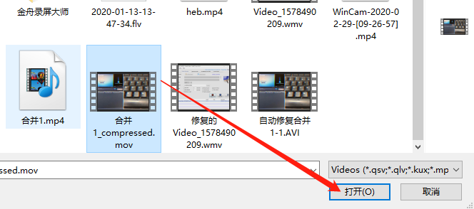 2.点击添加文件按钮之后,接下来在出现的选择文件界面中,我们选择想要转换的mov视频之后点击打开按钮。
