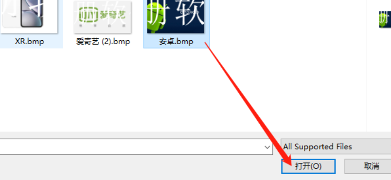 2.点击加号之后接下来会打开一个选择文件的界面,在这个界面中我们选中想要转换的BMP文件之后点击右下角的打开按钮。