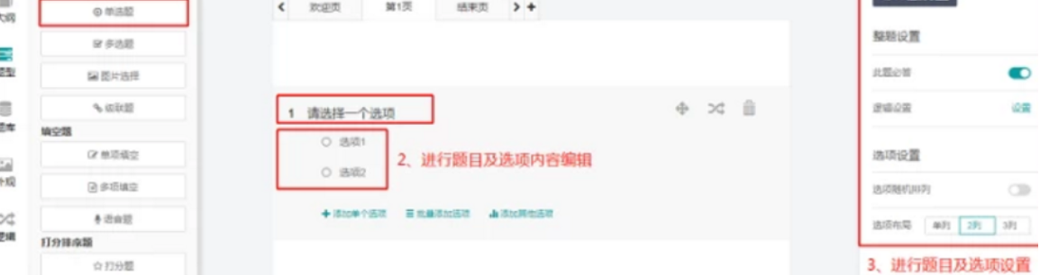 3.点击开始按钮之后我们就可以根据自己的问卷具体信息来进行设置了,包括题目设置、题目内容编辑等操作,根据具体需求设置即可。