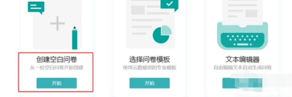 2.点击之后在出现的创建类型界面中想要创建的类型模块中的开始按钮,小编就以创建空白问卷为例来跟大家演示。