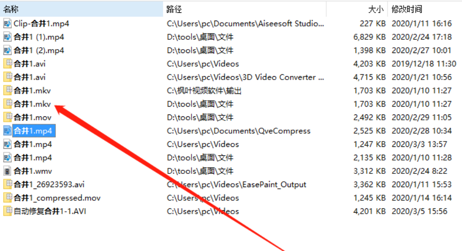 2.小编将搜索文件的类型选择成视频之后,在我们的界面文件列表中就可以看到电脑上所有的视频文件了。