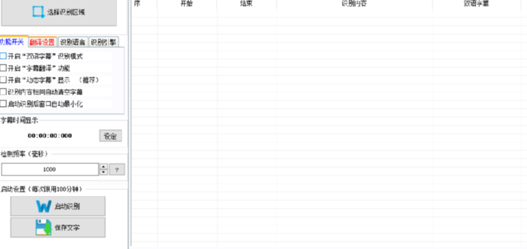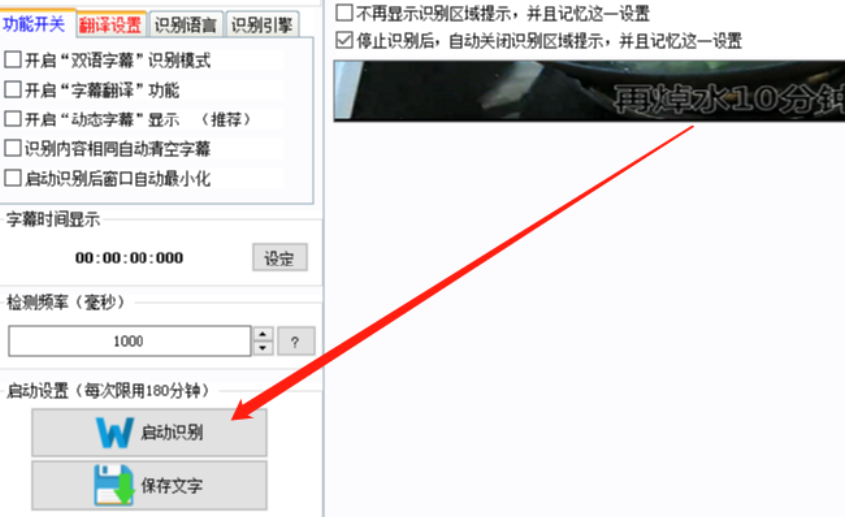 4.选择好字幕识别位置之后在我们的软件界面中可以看到选择区域的展示,确认无误之后我们点击左下角的启动识别按钮即可开始识别。