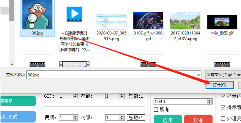 2.点击浏览按钮之后紧接着会打开一个选择文件的界面,在这个界面中选中需要放的的图片之后点击打开按钮,按住键盘Ctrl按钮即可进行多选。