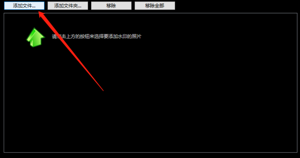 1.首先第一步我们打开软件之后在软件的界面左上角点击添加文件按钮,点击之后即可选择要添加水印的图片。