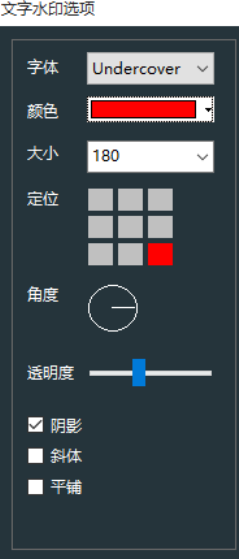4.紧接着进入到水印设置界面之后,我们在界面中输入文字水印的内容,然后设置好文字的字体字号等信息,在界面中间可以看到水印的效果。