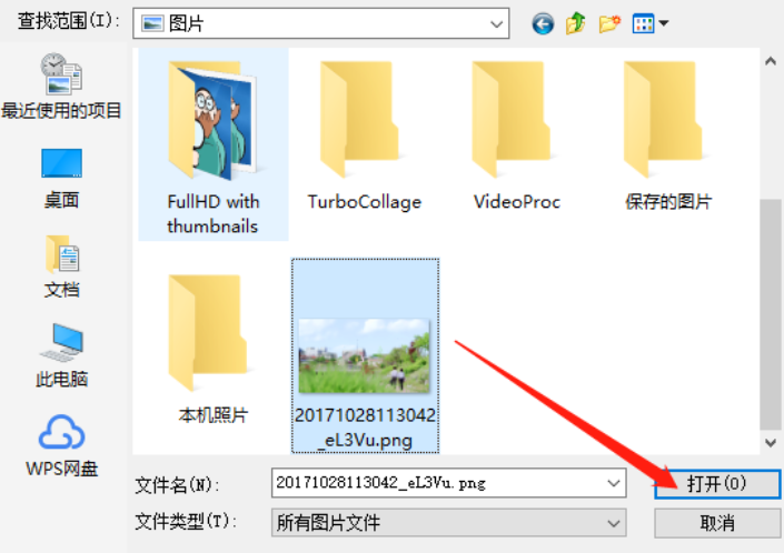 2.点击添加图片之后会打开一个选择文件的界面,在这个界面中我们选中目标文件之后点击打开按钮即可。
