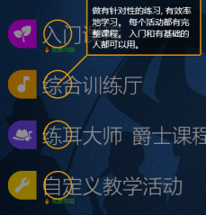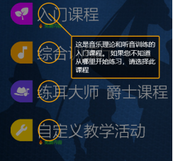 当然你可以觉得你已经不需要入门练习你也可以选择其它的比如综合训练厅和练耳大师爵士课程