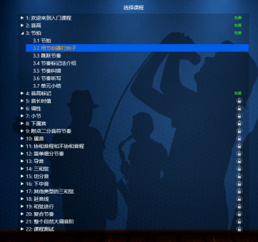 如果你不知道你是音乐才入门或者你什么都不知道,你就可以进入音乐入门课程这里面有非常全面的音乐入门练习,也给你安排了很多课程。