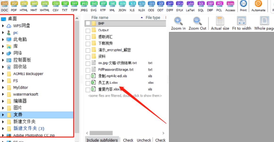 1.首先第一步我们点击打开软件之后,在界面左侧打开Excel文件所在的文件夹,打开之后在右侧界面中就可以看到一些Excel文件了。
