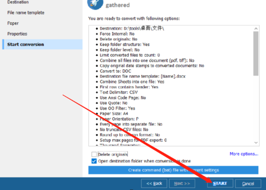 6.最后设置完成以后在开始转换这个模块中可以大致的预览到我们的一些设置选项,确认无误之后点击右下角的Start按钮就可以开始转换了。
