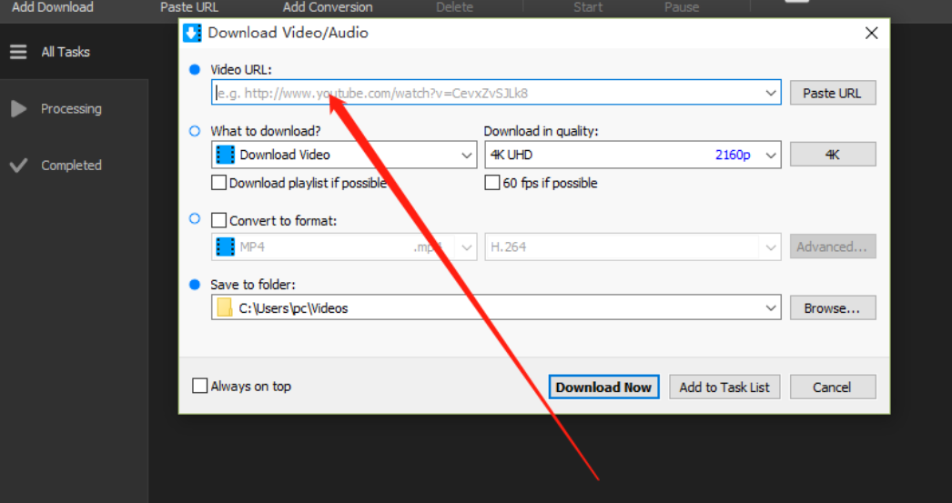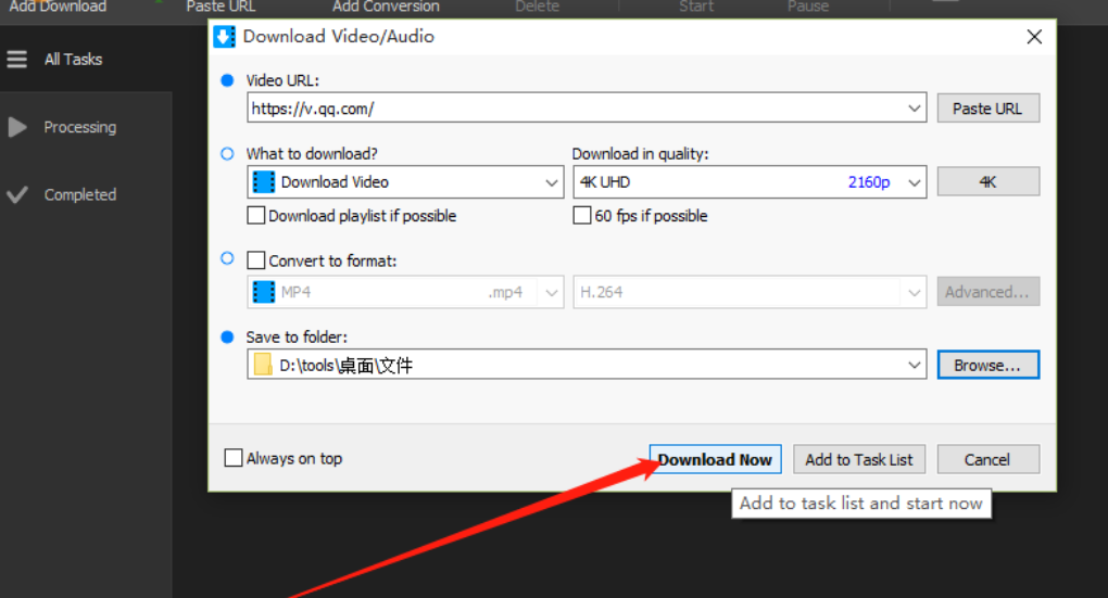 5.最后一步我们在设置好输出储存文件的位置之后,点击界面下方的Download Now这个功能按钮就可以开始下载添加链接中的视频了。