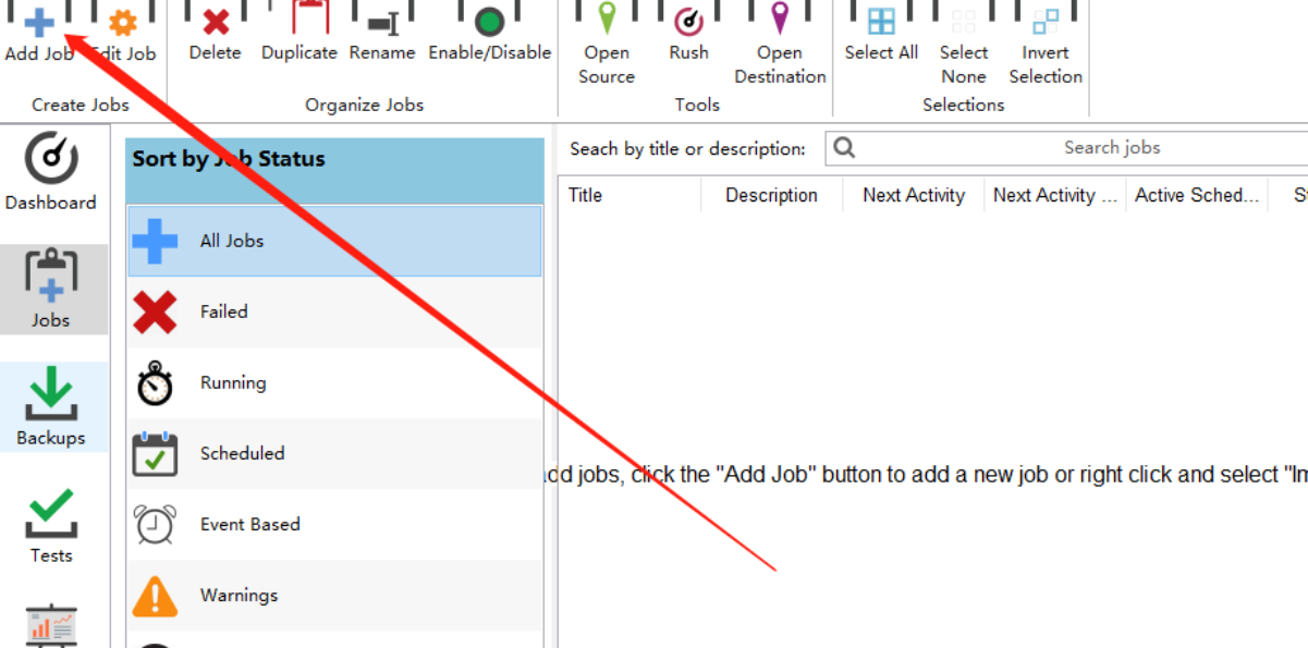 1.首先第一步我们打开软件之后在软件的主界面左上角点击Add Job这个功能按钮,点击之后即可添加一个备份任务。
