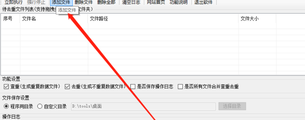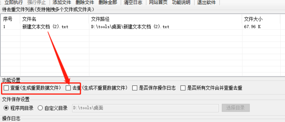 3.点击选择好文件之后,我们就可以在界面中看到目标文件了,在下方可以勾选查重、去重这两个功能。